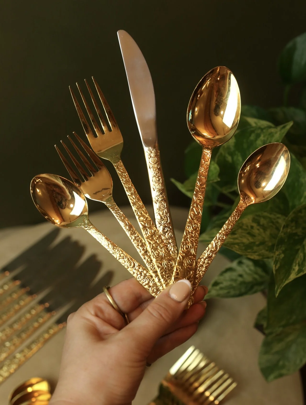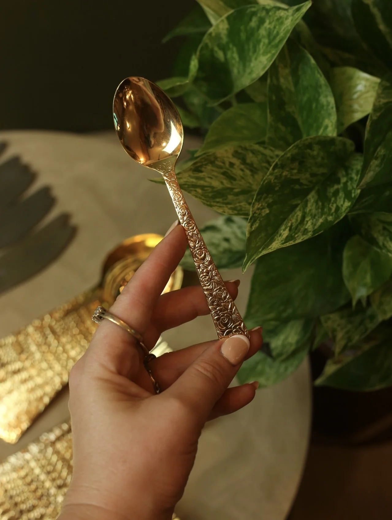 Rose gold metal trivet with a beautiful design of calla lilies