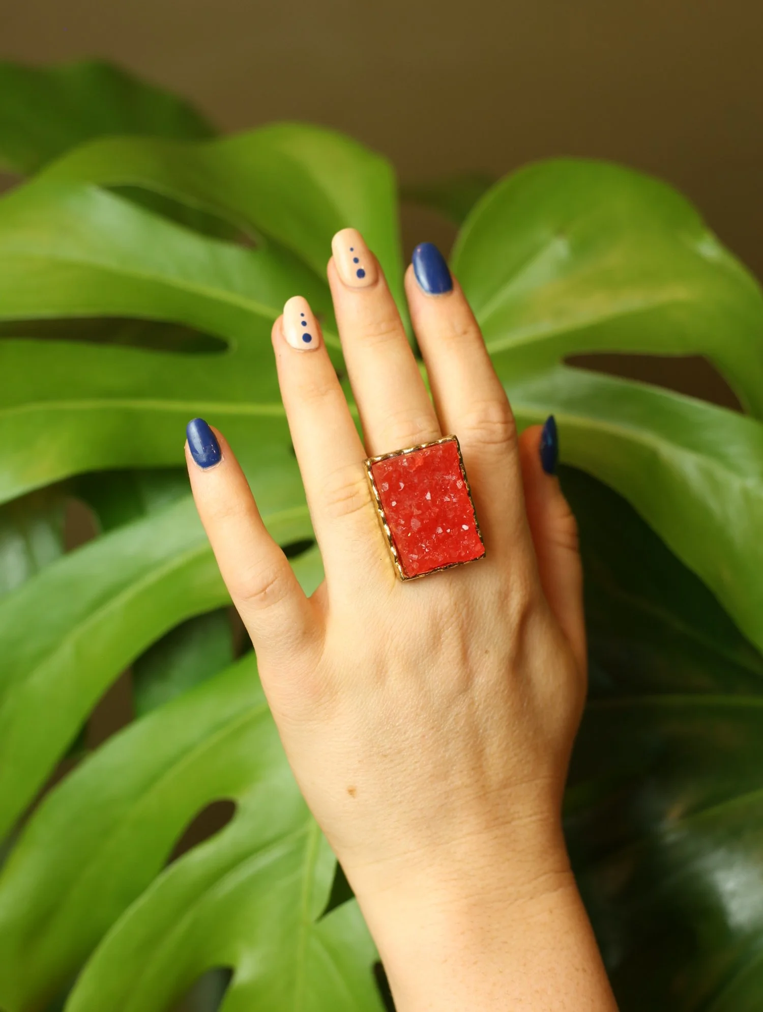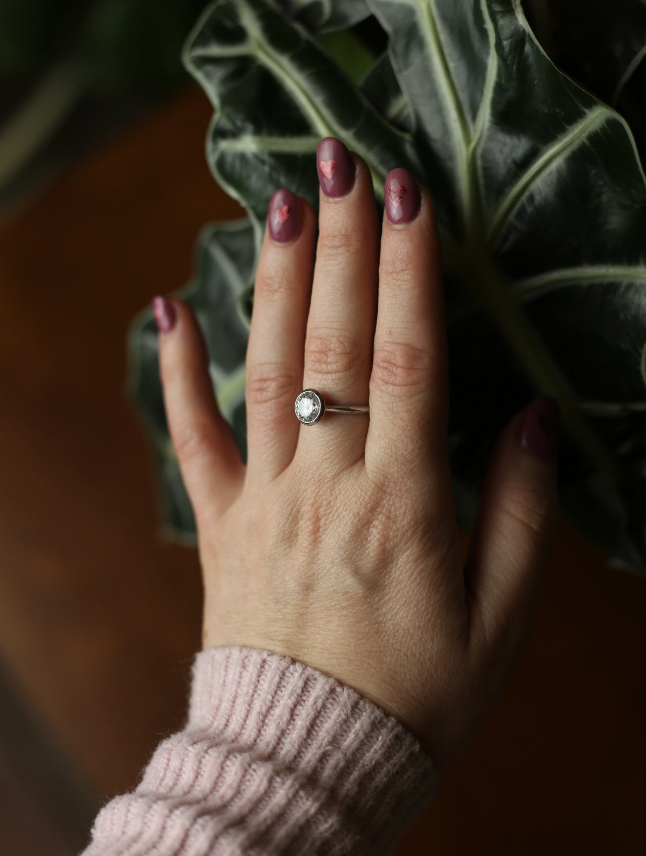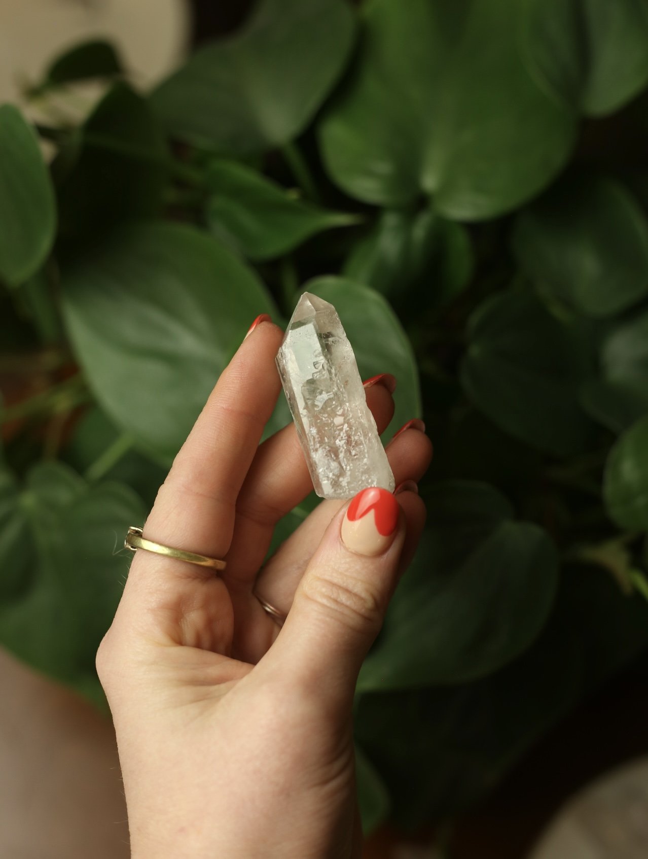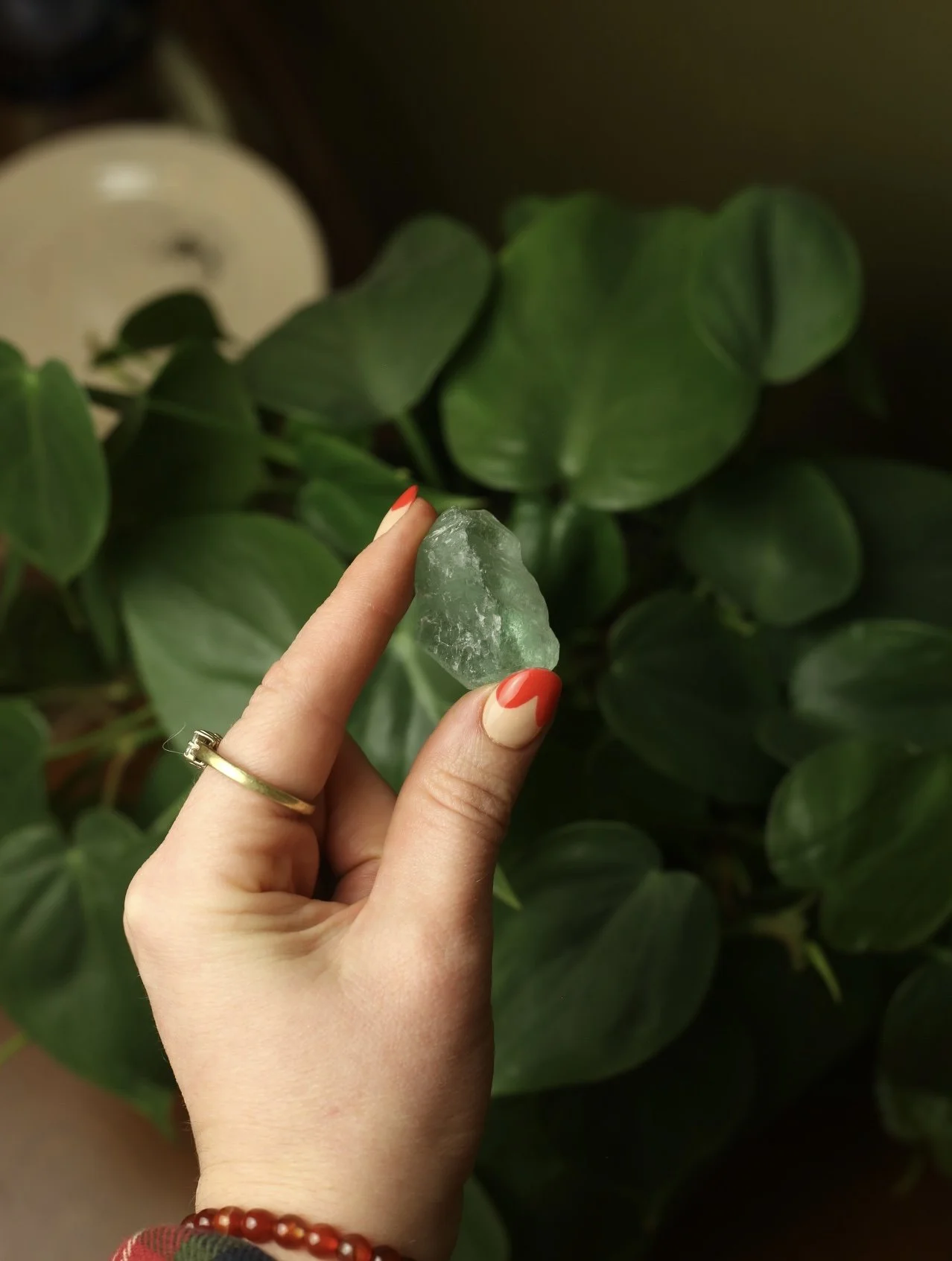 A curated collection of gemstones along side handmade jewelry from woman owned businesses.