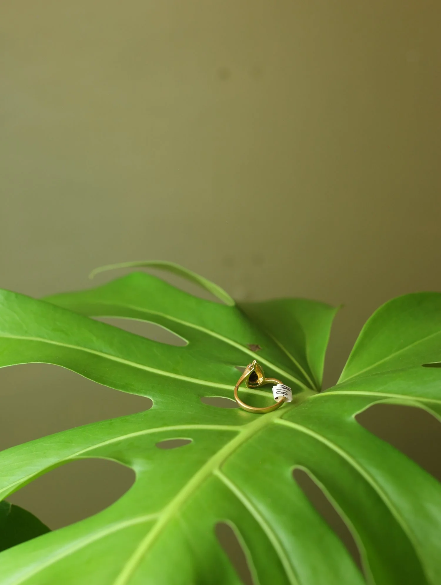 Adorable statement ring with iridescent rhinestones and antiqued style bronze metal band