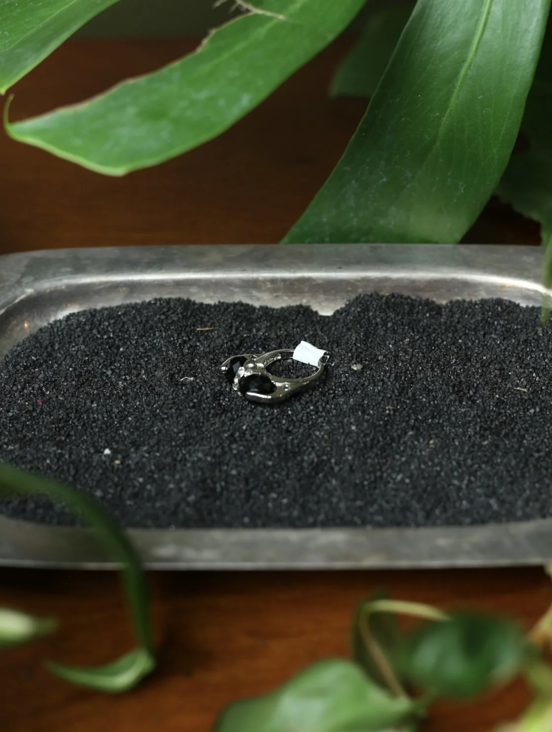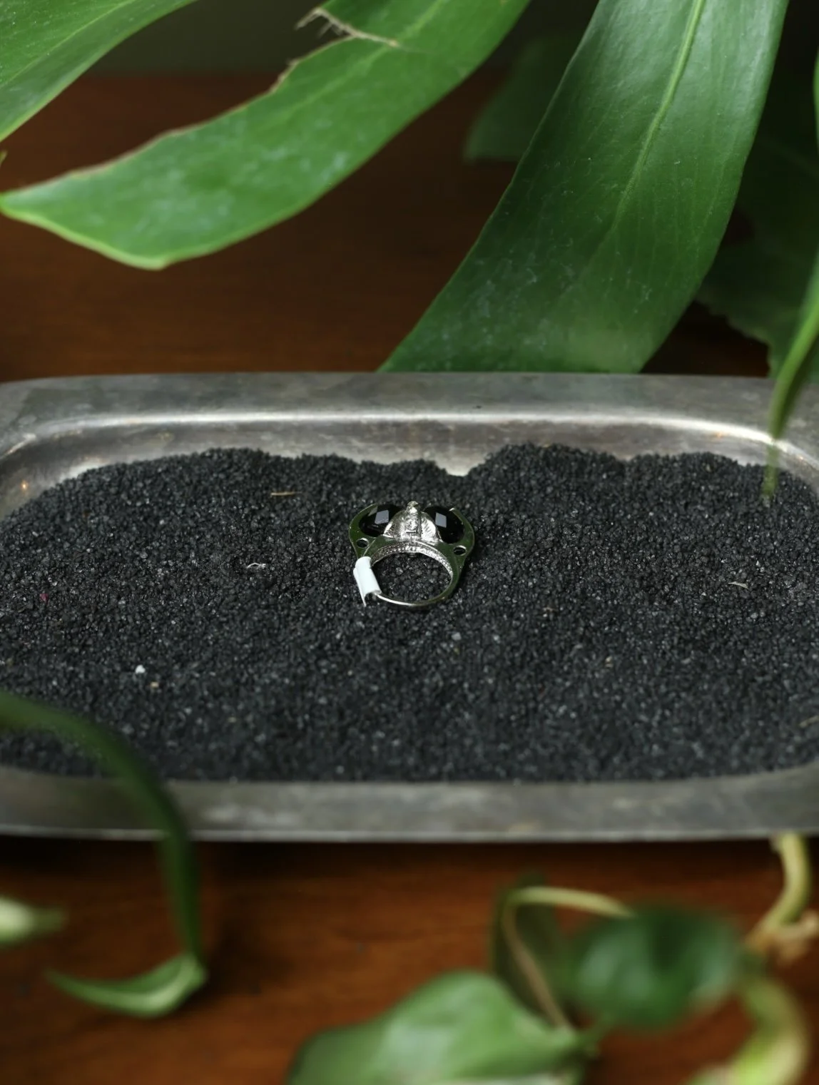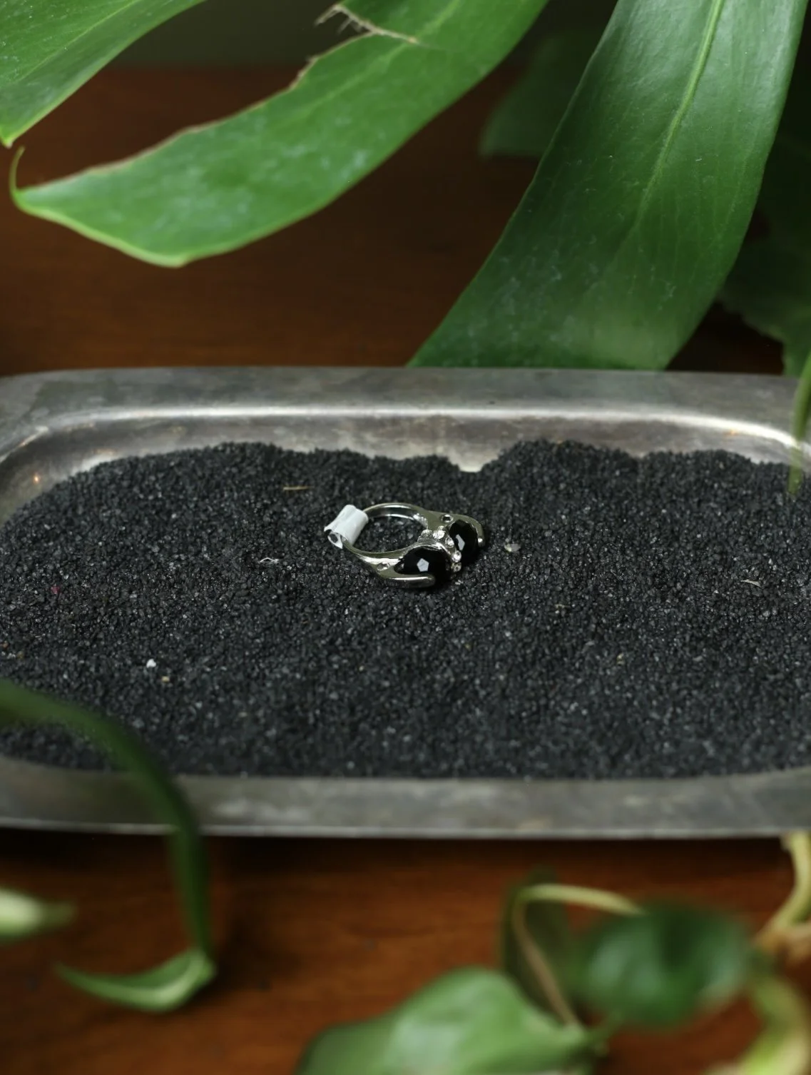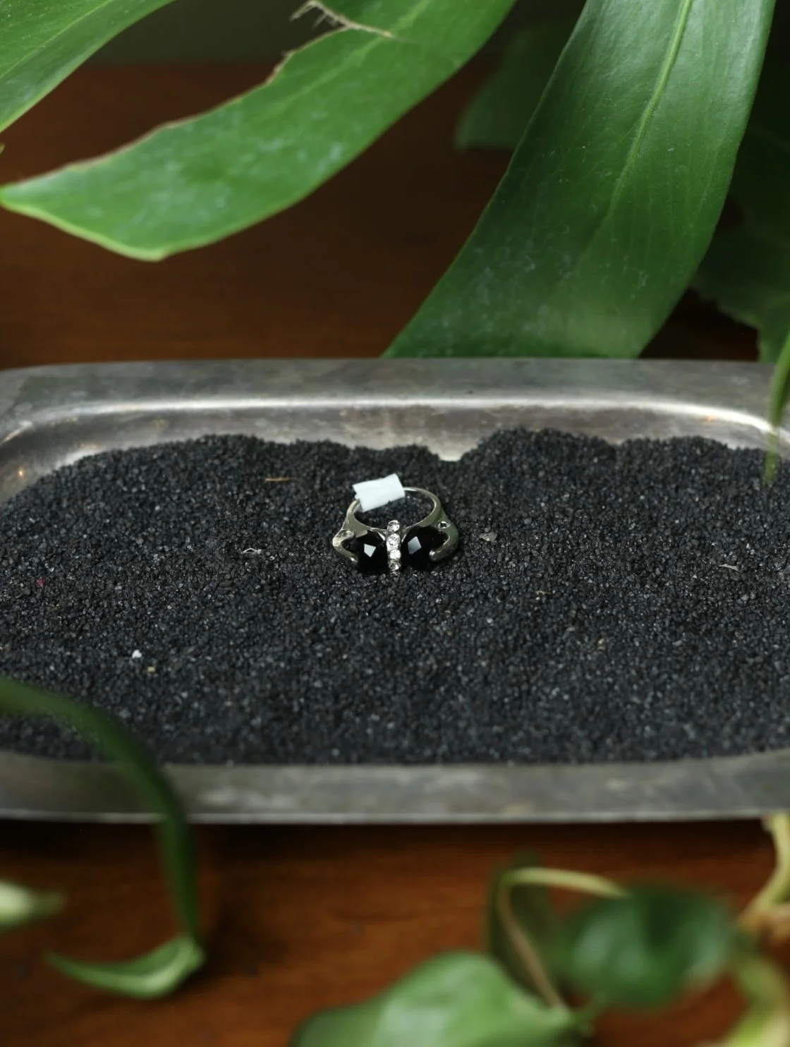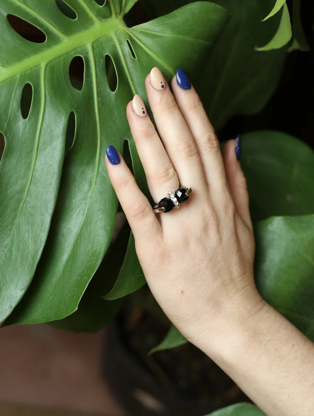 Gold tone cluster ring with diagonal marquis shaped opal stones and small clear gems