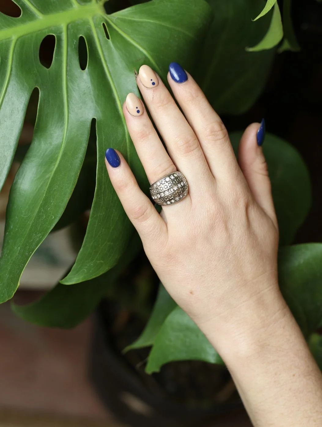 Sweet delicate gold tone ring with two faux diamond gems and two faux garnet gems