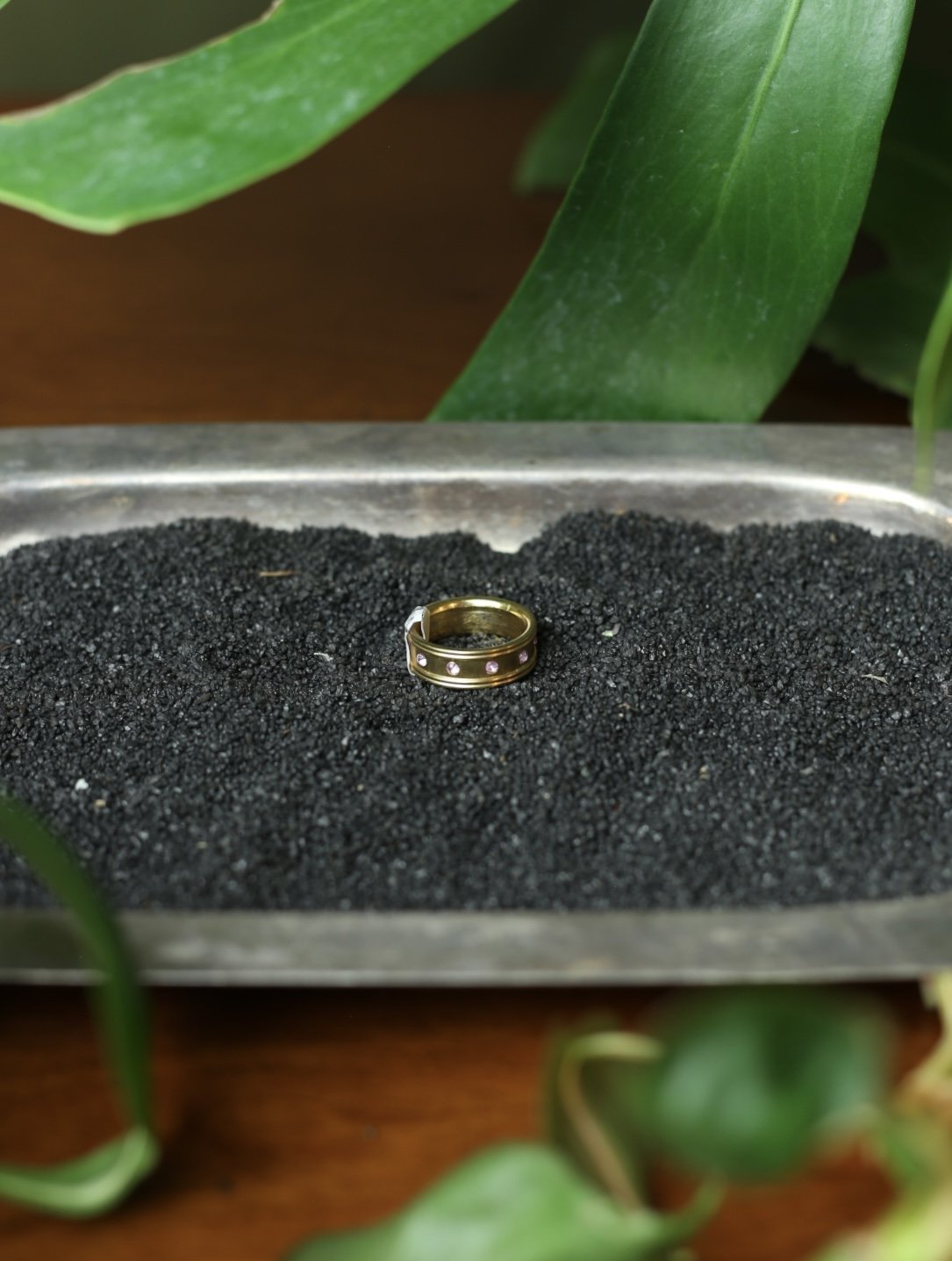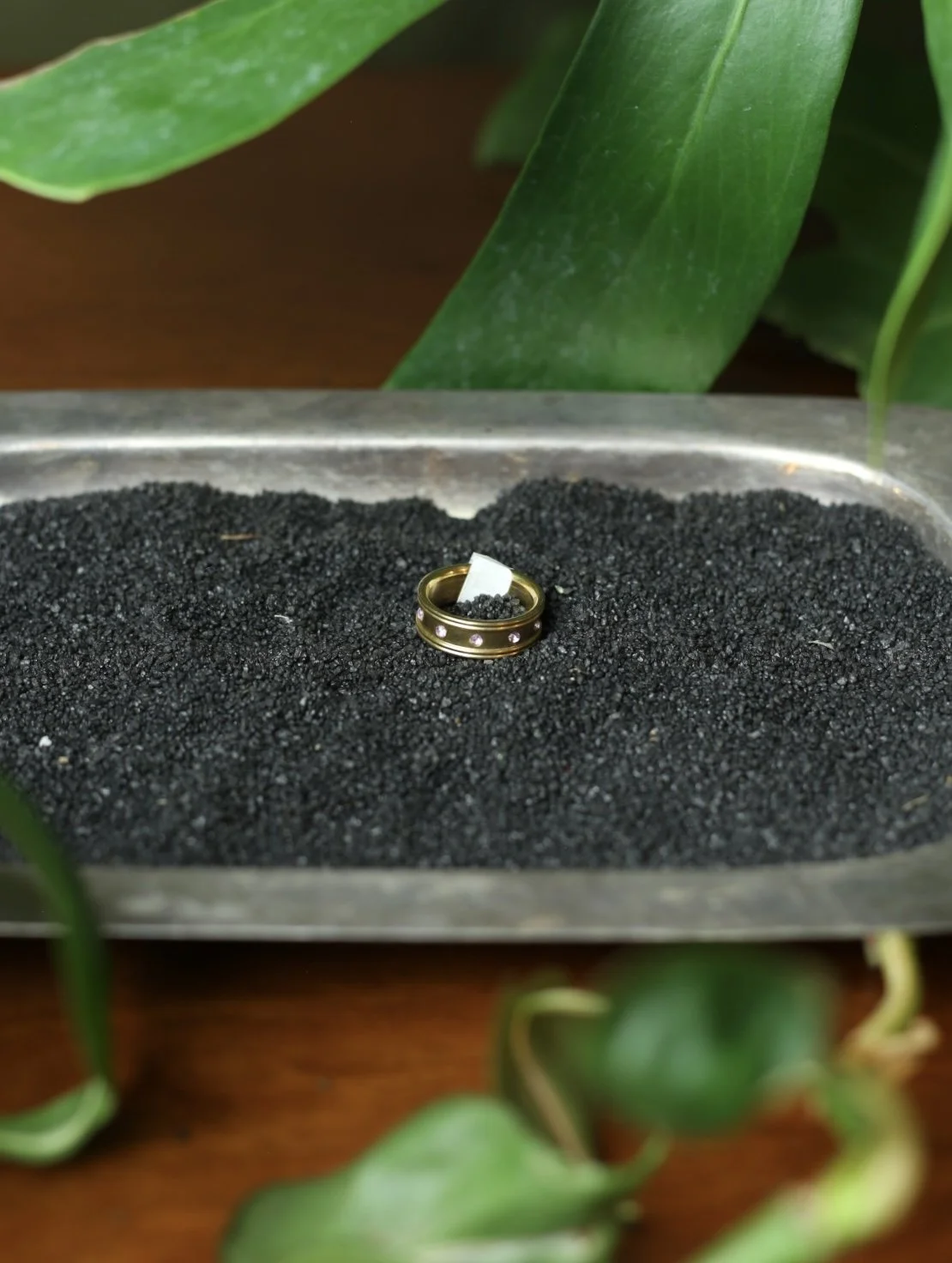 Silver tone cocktail ring with one large, ruby, red stone and a partially bedazzled band with clear gems