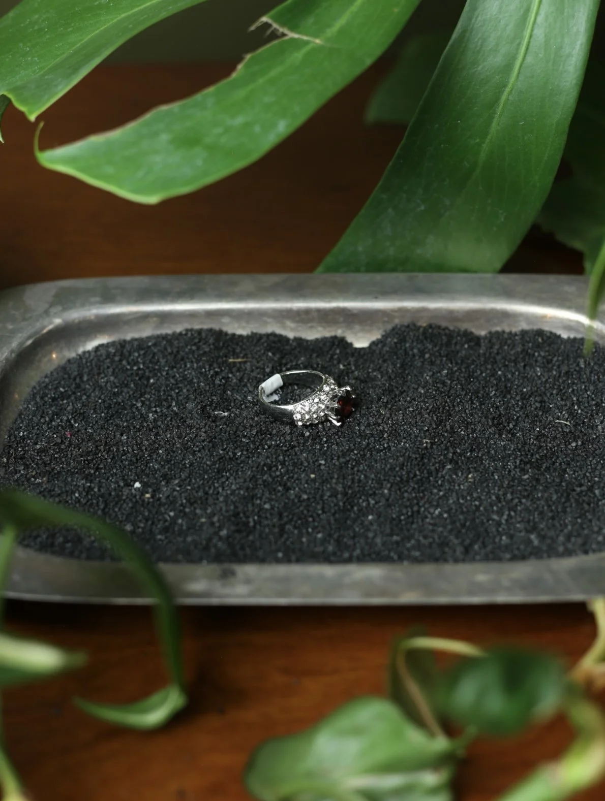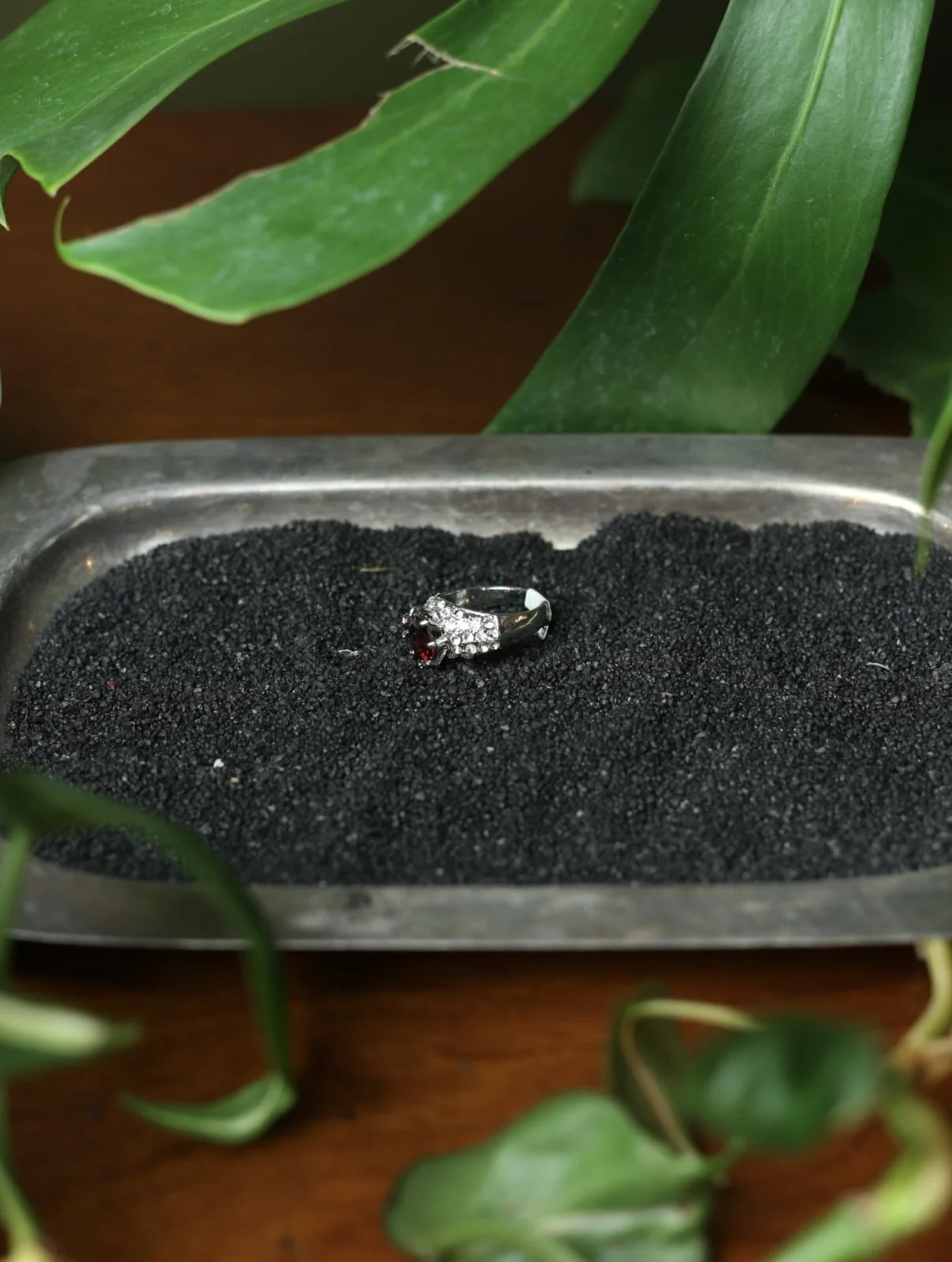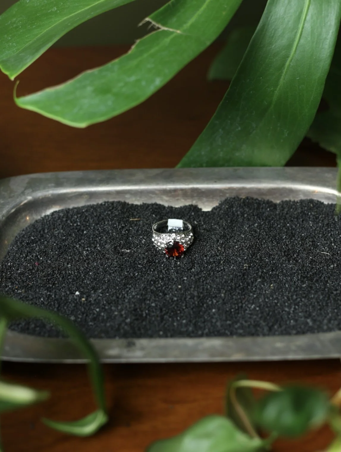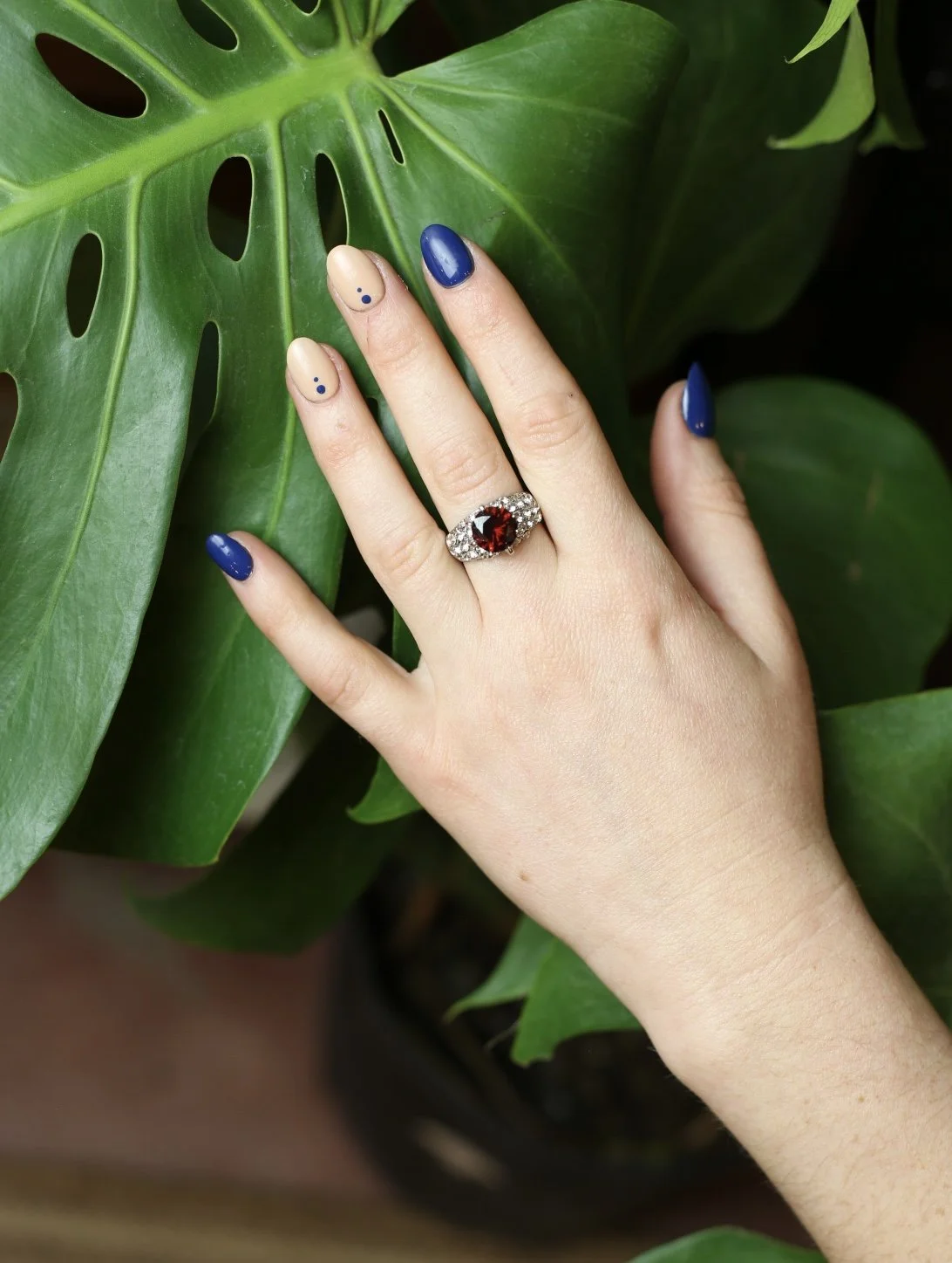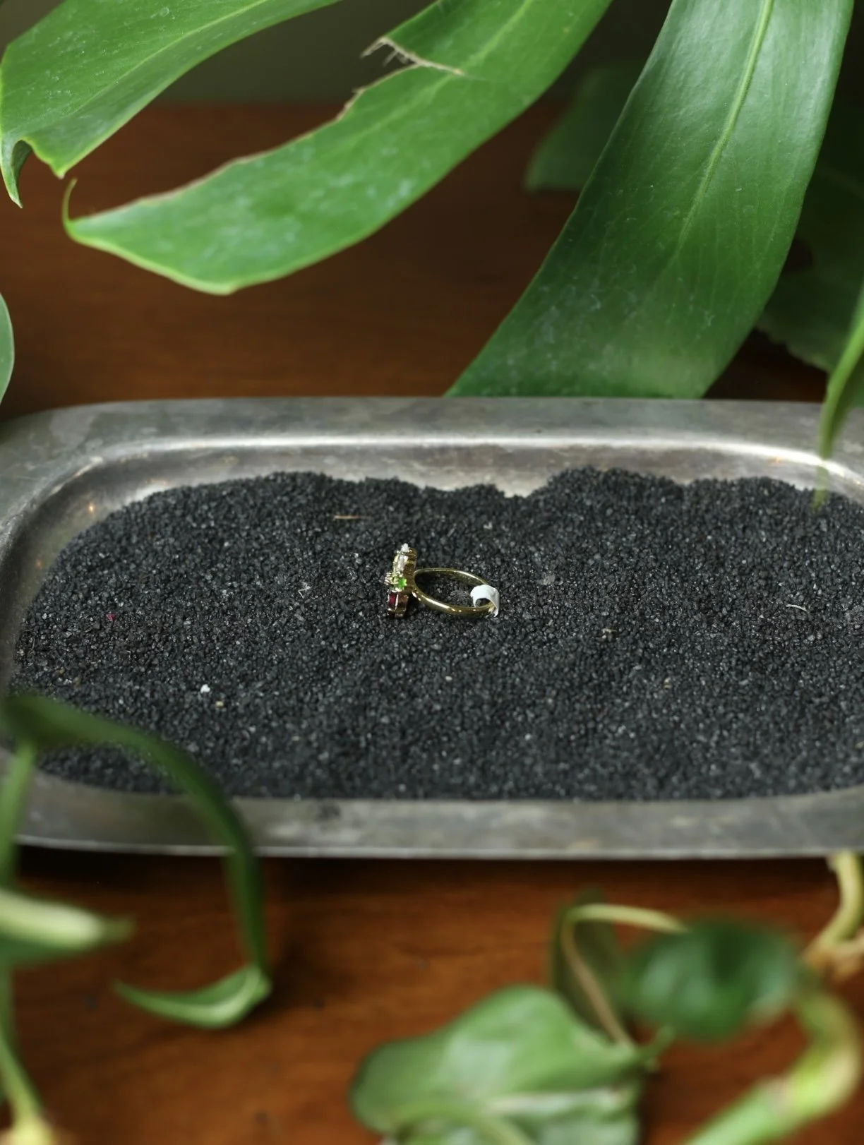 90s gold tone flower gemstone ring with clear, green, red, blue and yellow gems